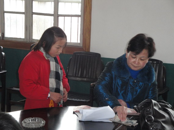 22日上午,裕安区民政局的领导冒着严寒,来到狮子岗乡看望15名正在读书的孤儿,并将香港基督教慈善总会捐助给每位孤儿下半年的生活费720元人民币和成都一家公司捐助每位孤儿每月100元的生活费送到孤儿手中。
