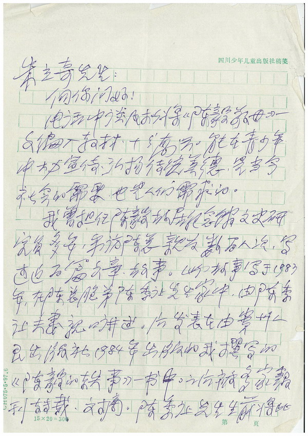电话中谈及拟将①《陈毅敬母》一文编入教材十分高兴。能在青少年中大力宣传弘扬传统美德,是当今社会的需要,也是人们需求的。