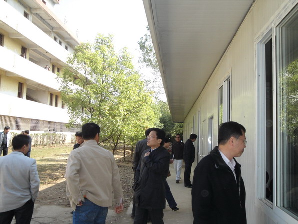石赓先生一行认真听取了南岳庙学校丁美瑜校长的汇报,详细了解了该校的师资力量、办学条件、教育环境。实地查看了小学部活动板房教室、平房教室和教师办公环境。石赓先生对南岳庙学校整体办学环境有了较深刻的认识,并表达了捐资意向。