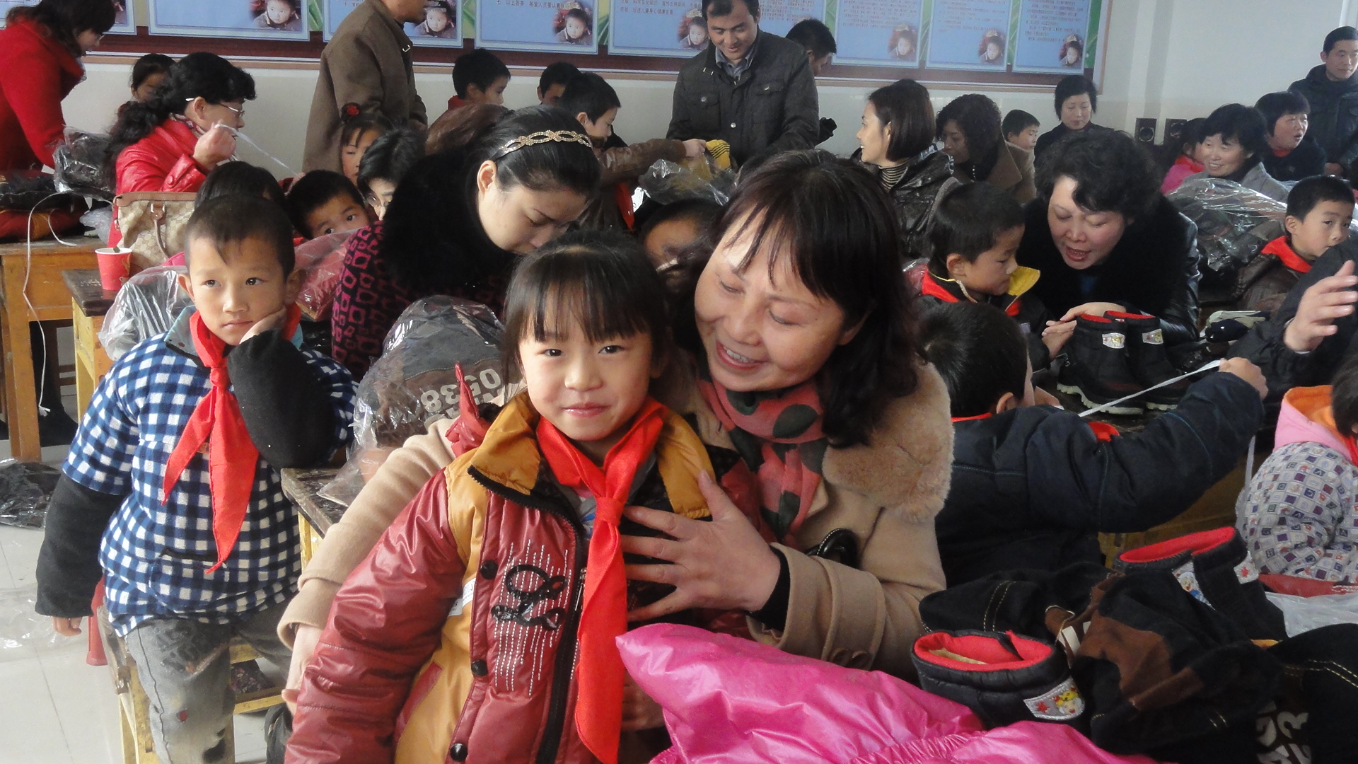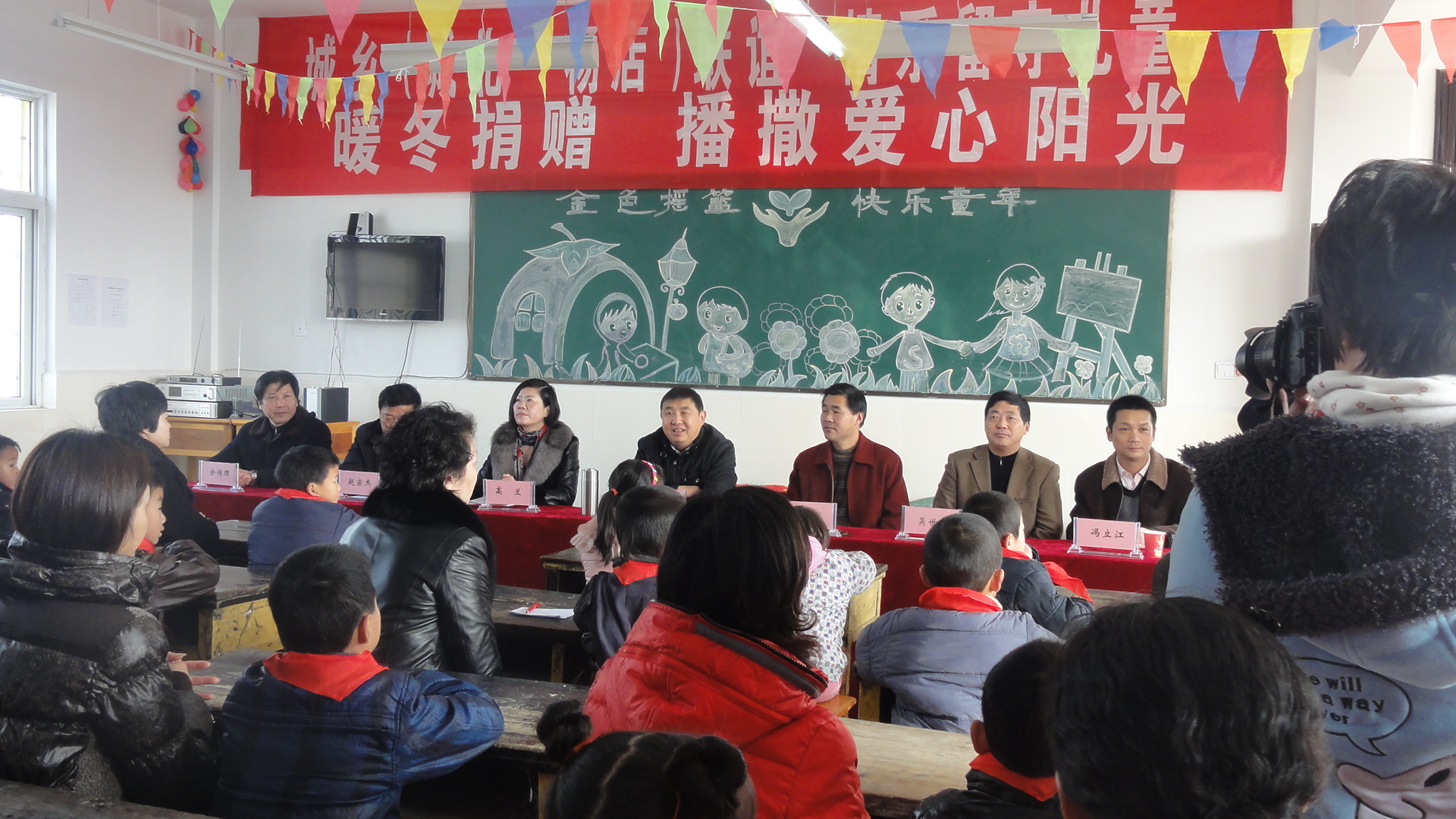 2011年12月3日上午狮子岗乡杨店小学内彩旗招展,六安市城北小学20余名教师组成的爱心爸爸妈妈在高兰校长的带领下来到杨店小学与20多名贫困留守儿童开展“手拉手,爱心结对”活动。