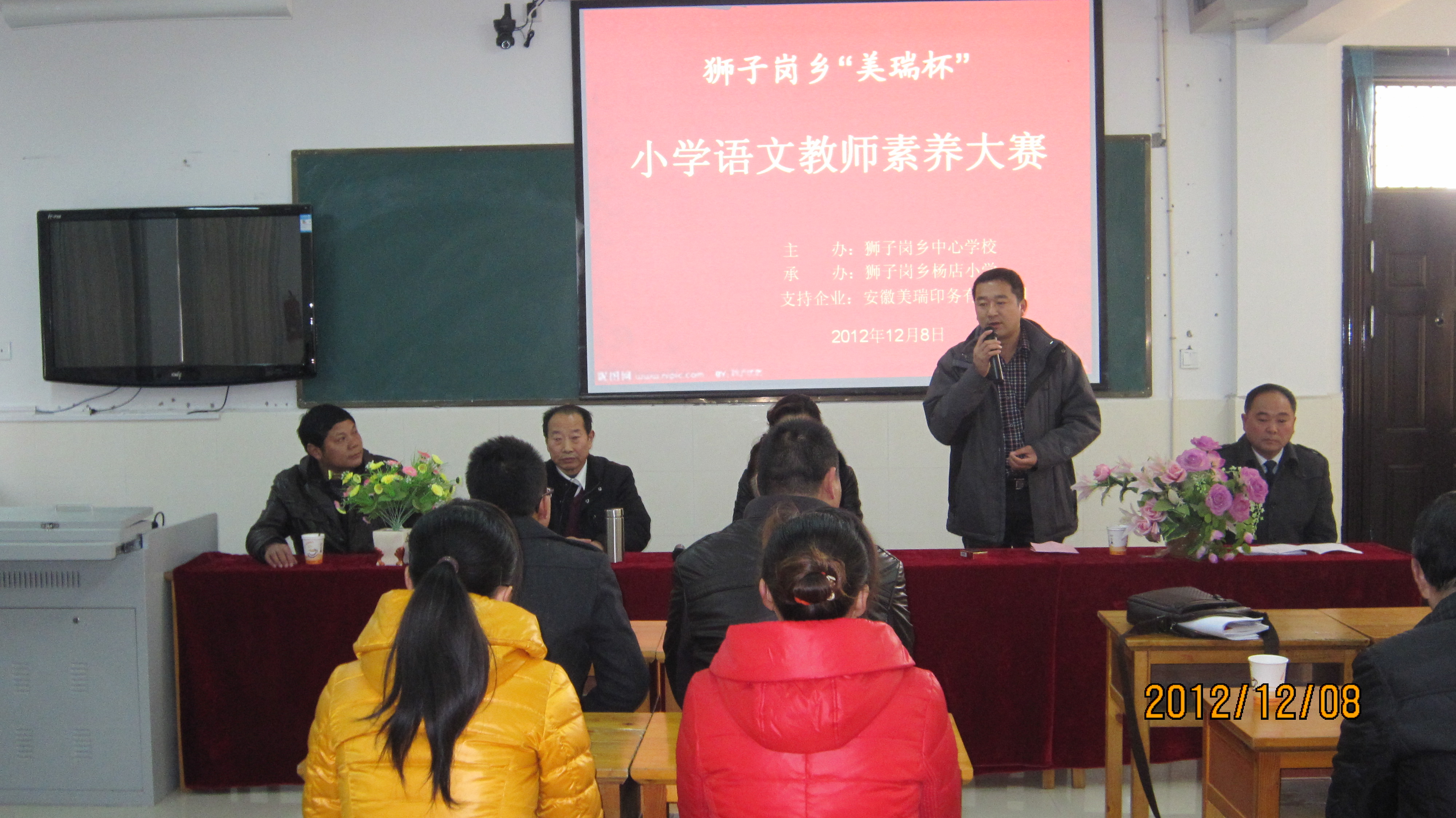 2012年12月8日,冬日融融,激情深深,狮子岗乡“美瑞杯”小学语文教师素养大奖赛完成了各项赛事,圆满落幕,获得了理想的效果。