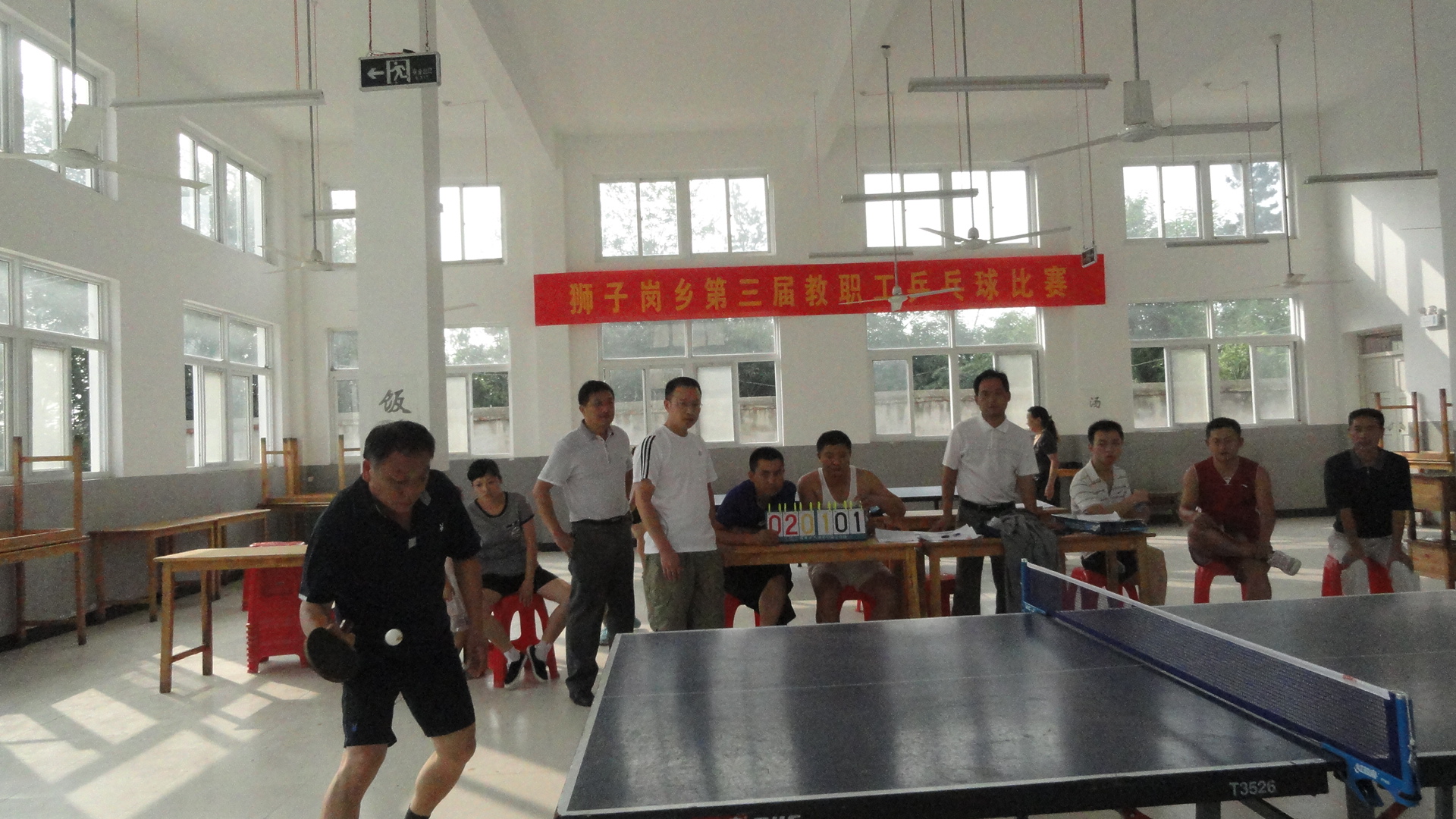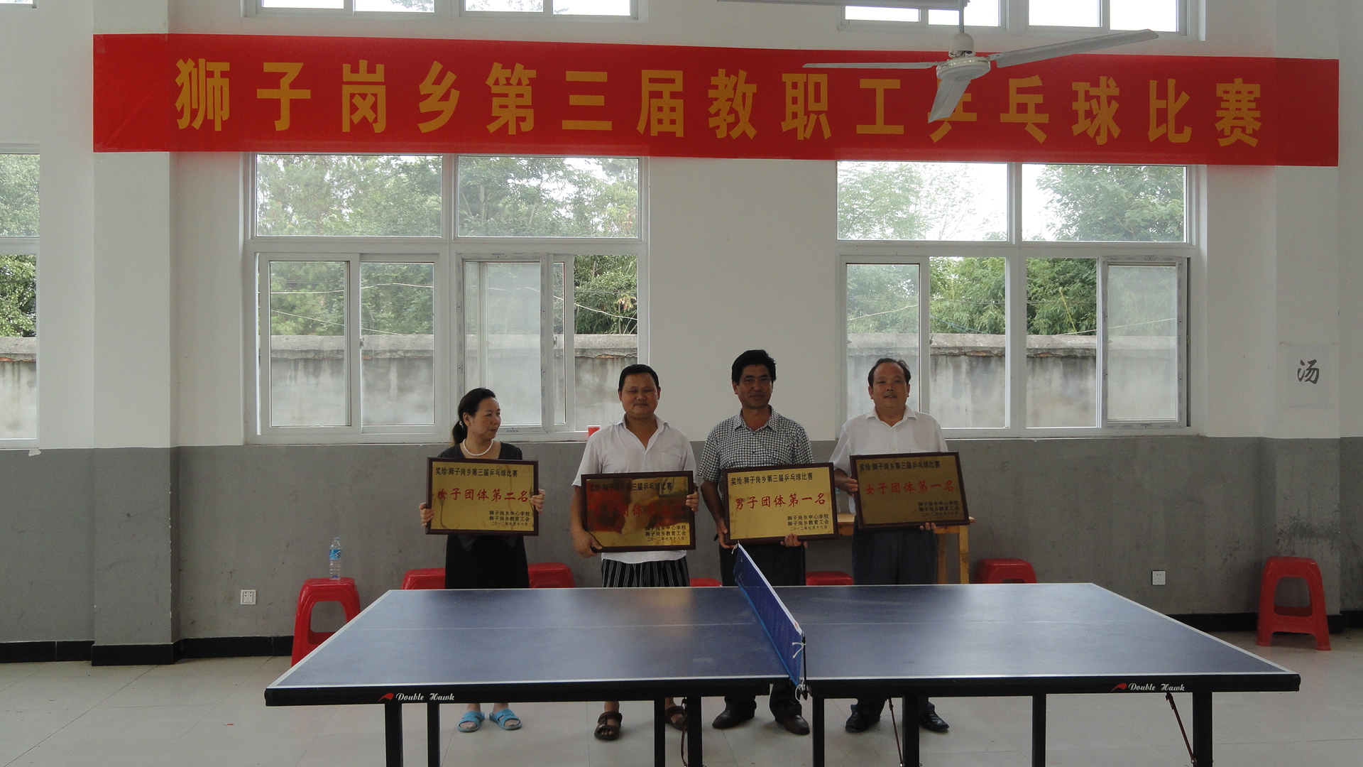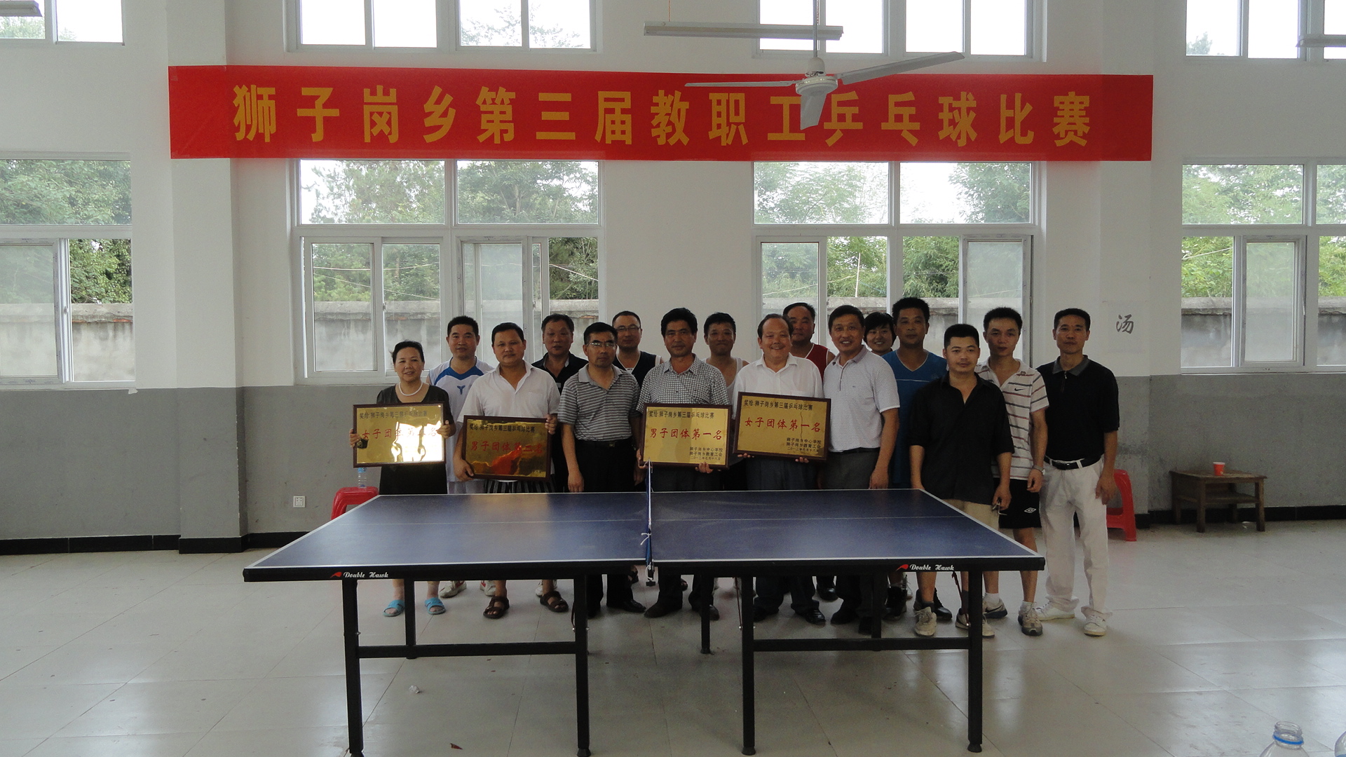 2012年7月18日,狮子岗乡中心学校和乡教育工会在狮子岗初中学生餐厅举行乡第三届教职工乒乓球比赛。乡人大主席程希银出席比赛闭幕式并为获奖选手颁奖。