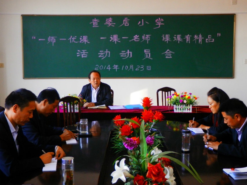 狮子岗乡查婆店小学自新课程改革实施以来,校长率先,全员参与,刻苦学习新课改理论,切实转变观念,打造实效课堂,追求高效课堂,取得了可喜的成果。特别是本学期积极响应省市区教育主管部门部署的“一师一优课、一课一名师、课课有精品”的观课议课活动,热情高涨,精彩纷呈。他们采取“校本教研”的形式,利用现代化教学设备的优势,从实制定了从校长到教师每人上好一节公开课的计划。为此学校成立领导小组,校长任组长,副校长任副组长,教导主任华恩和办公室主任陈俊具体操作实施。从9月下旬始至12月下旬终,每周三安排2—3人上公开课,坚决兑现,雷打不动。青年教师跃跃欲试,中老年教师不甘示弱。每节公开课,都有近十人听课,并且请华恩主任亲自摄像,当即录制光盘,这是全乡中小学独一无二的。