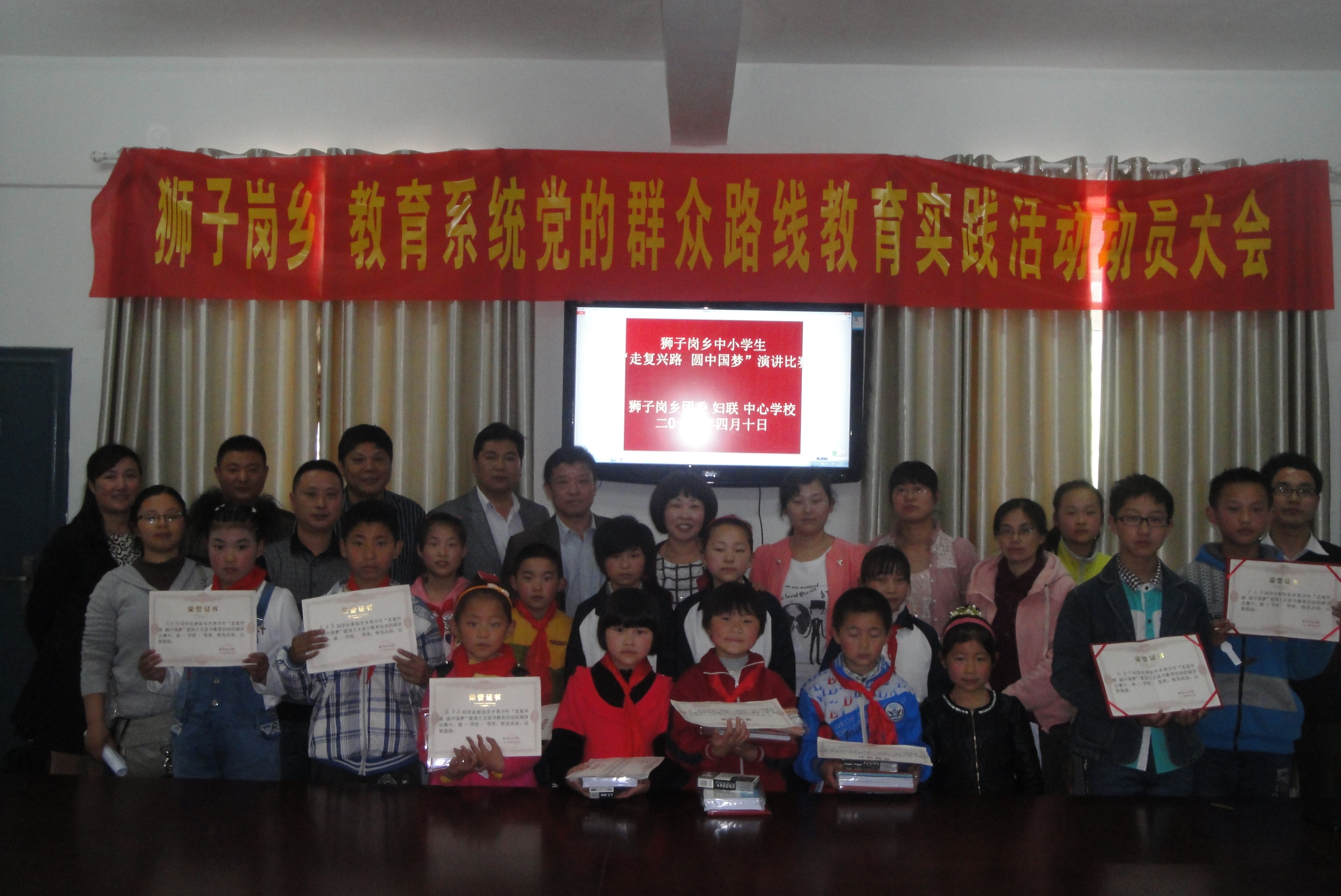 2014年4月10日上午狮子岗乡团委、妇联和中心学校在乡中心校三楼会议室举行了“走复兴路,园中国梦”中学生演讲和小学生讲故事大赛。全乡中小学在学校比赛的基础上选出优秀选手参加了此次比赛。