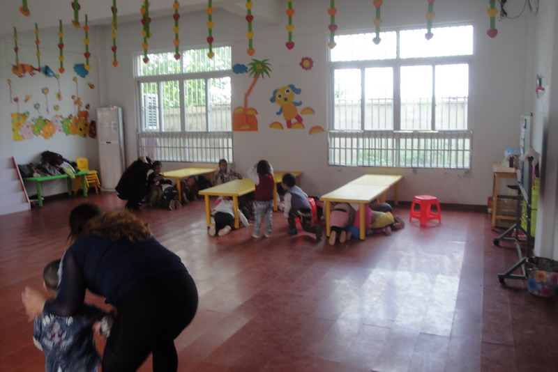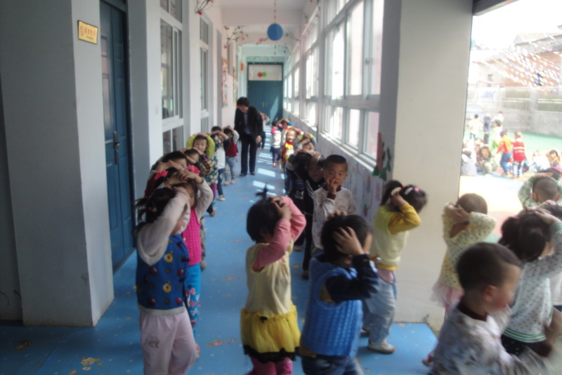 为了在幼儿中普及防震及逃生知识,提高幼儿对地震灾害的应急反应,5月8日下午,狮子岗乡中心幼儿园开展了一次防震逃生演练活动。