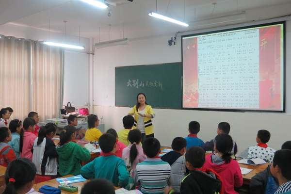 本次活动在城北小学三位老师的示范课中拉开序幕。第一节是安徽省教坛新星、市学科带头人邵蕾老师执教六年级美术课《装饰色彩》,邵老师深厚扎实的专业素养,举重若轻的课堂调控,独具匠心的教具准备,精致大气的教学设计,受到听课老师的高度评价。课下,全体老师观摩了杨店小学的大课间活动。大家对杨店小学大课间活动井然有序的组织工作,丰富多彩的活动形式,学生参与兴趣盎然,活动开展扎实有效,给予了极高的评价。第二节课,安徽省农远应用新星、市教坛新星蒋逍勤老师执教五年级音乐《大别山民歌欣赏》,蒋老师花费大量心血搜集素材,结合地域特色开发课程资源,为孩子们呈现了一节赏心悦目的音乐欣赏课,孩子们在提升音乐素养的同时,增进了对本土文化的了解和热爱。最后,市学科带头人、市教坛新星马静老师执教六年级英语课《story time》,马老师的课堂是生活的课堂,活动的课堂,创造的课堂,她创设了鲜活灵动的教学情境,通过轻松活泼的师生活动,潜移默化,学生掌握了会话技巧,内化了语言。