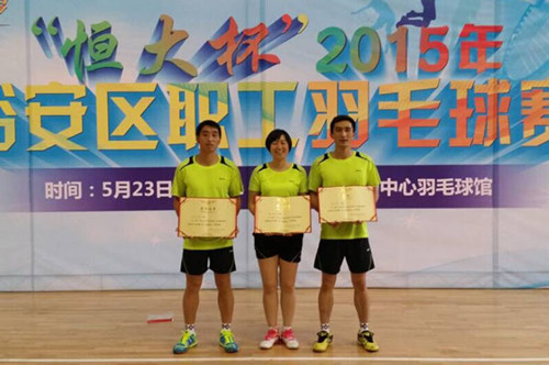 杨店小学严晨老师获“恒大杯”裕安区职工羽毛球赛混双冠军