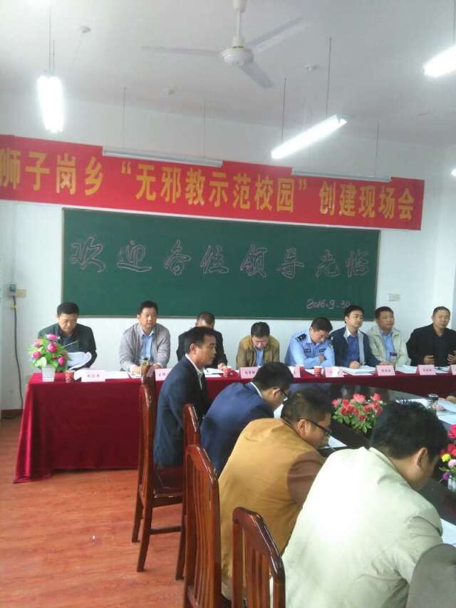 2016年9月30日上午,狮子岗乡“创建无邪教示范校园活动”现场会在査婆店小学隆重召开。裕安区政法委副书记程永志、国保副大队方憨、乡党委书记洪绍余、乡人大主席程希银、乡党委委员刘运林、乡中心校校长赵宗杰、派出所所长汤长城以及全乡中小学校长、幼儿园园长出席了本次现场会。