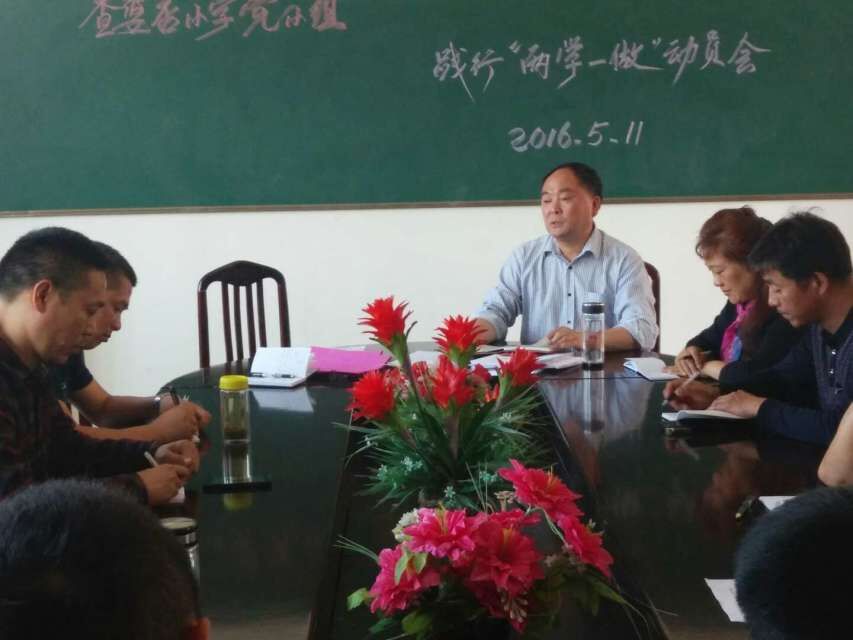 5月11日下午4点半,狮子岗片小教支部“两学一做”学习教育活动动员会在査婆店小学会议室隆重召开。王立平、陈久炳、胡时宝、沈孝先、许乃珍五位支委成员及查婆店小学全体党员参加了会议。