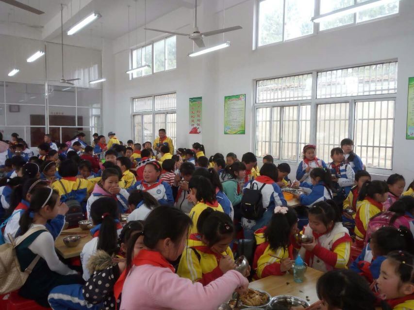 中午,两校师生在查婆店小学食堂共进午餐,七百人共餐场面真可谓壮观,粗茶淡饭,真情留客,笑语声声,回荡食堂内外。