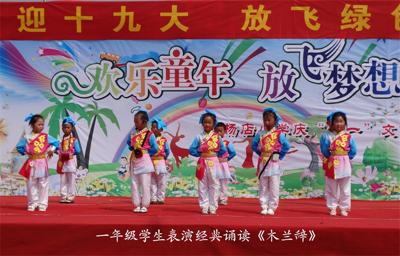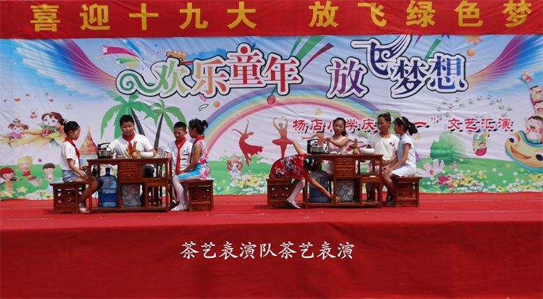 六一儿童节是孩子们的节日,也是他们成长过程中最为珍贵的记忆。为传承传统文化,放飞孩子们的梦想,让他们过一个充实、多彩、快乐的节日,6月2日上午,在彩带飘扬的喜庆中,在老师和家长的祝福中,杨店小学迎来了2017年“茶香校园”文化节暨庆六一活动。本次的主题是“喜迎十九大,放飞绿色梦想”。